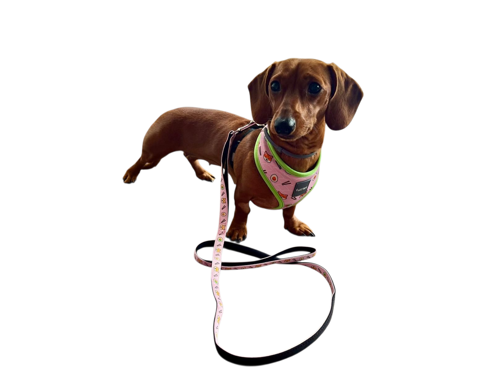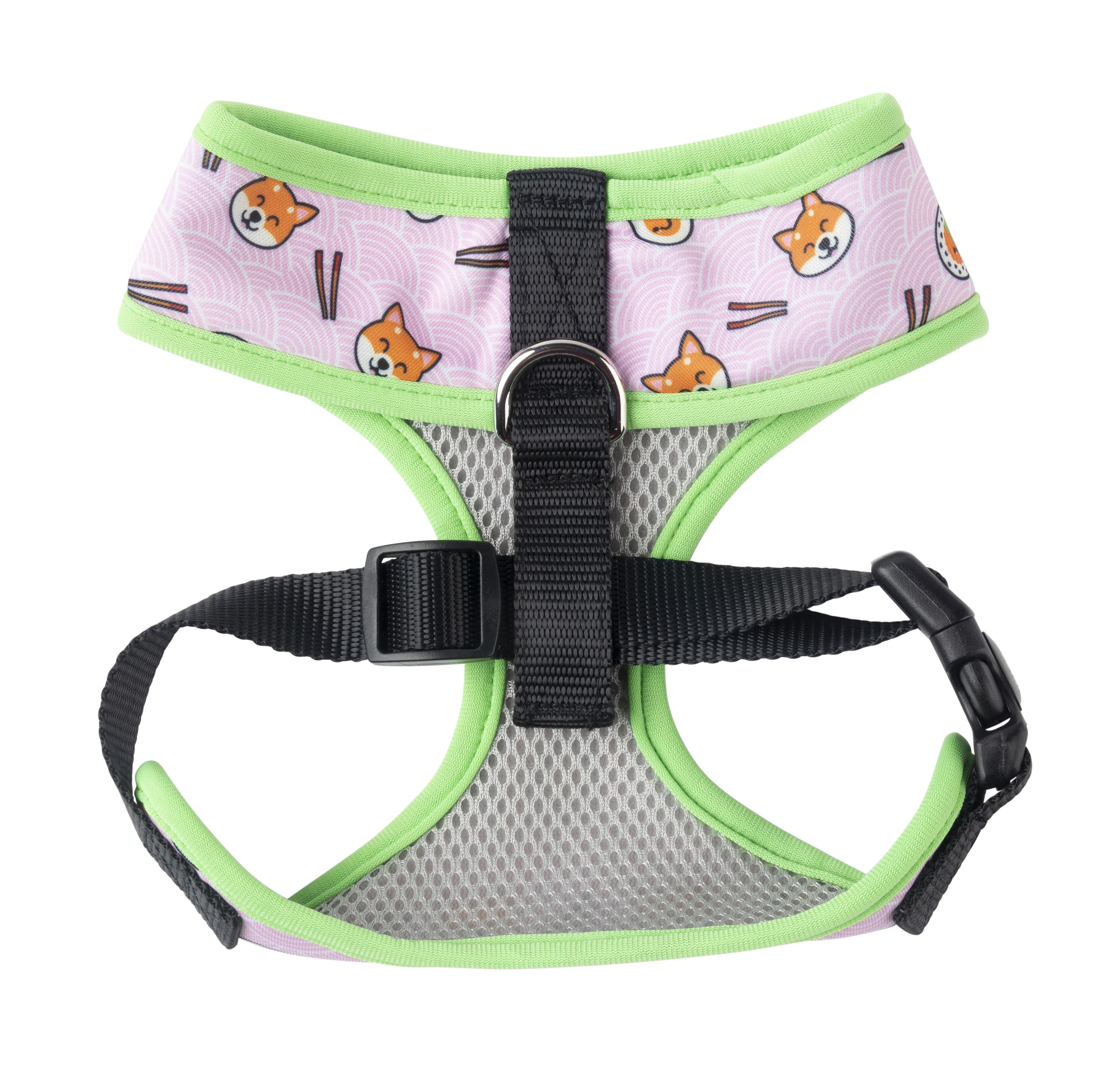 El arnés Sushiba de FuzzYard combina la ternura de los perritos Shiba Inu con deliciosas piezas de sushi sobre fondo rosa pastel. Un diseño lleno de personalidad que hará que tu peludo sea el centro de todas las miradas.