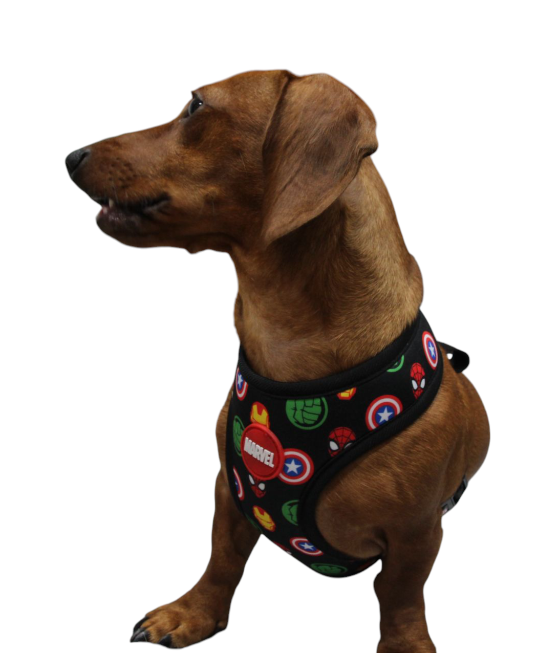 Arnés reversible oficial Marvel, combina comodidad, resistencia y mucho estilo friki.