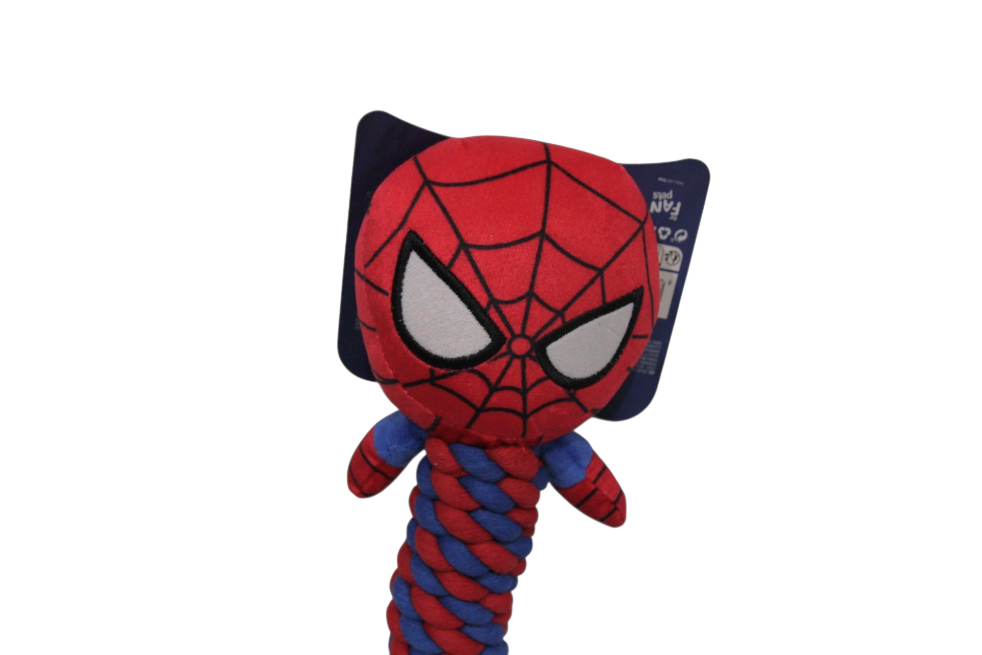 Este juguete de Spider-Man combina lo mejor de dos mundos: una cuerda trenzada que encanta a los peludos y una cabecita blandita de peluche para abrazar (o morder con amor).